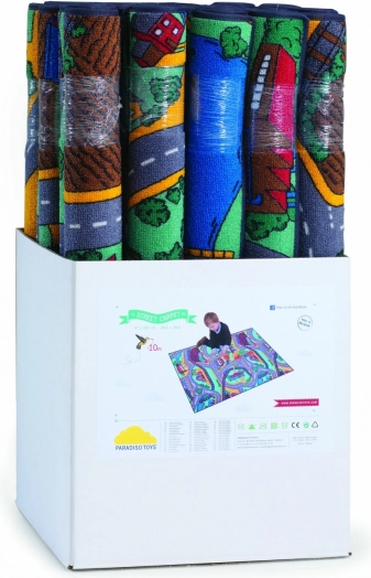 Der Spielteppich ist eine schöne Ergänzung für jedes Kinderzimmer mit einer Karte von Straßen und Gebäuden, die die kindliche Fantasie und Vorstellungskraft unterstützt.