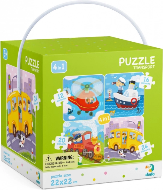 Das Set DODO Puzzle Verkehrsmittel 4-in-1 bringt Kindern Freude am Entdecken und schrittweisen Verbessern. Dank der unterschiedlichen Schwierigkeitsgrade der einzelnen Puzzles stärken Kinder ihr Selbstvertrauen und verbessern ihre Konzentration. Farbenfrohe Illustrationen beliebter Fahrzeuge fördern zusätzlich die Vorstellungskraft und den Wortschatz.