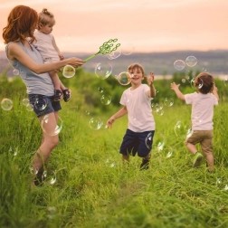 Erleben Sie den Effekt großer Seifenblasen und einen dichten Regen aus Mini-Bläschen – einfach durch Wechseln des Rings. Maximale Abwechslung für jedes Kind.