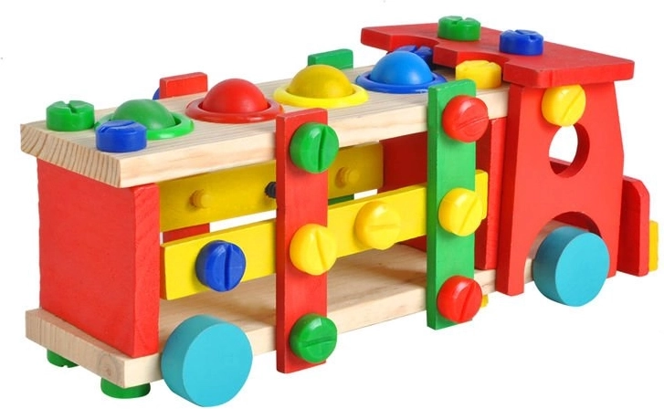 Das pädagogische und interaktive Spielzeug in Form eines Holzautos fördert motorische und kognitive Fähigkeiten . Es unterstützt auch die kreative Seite des Kindes sowie die Konzentration.