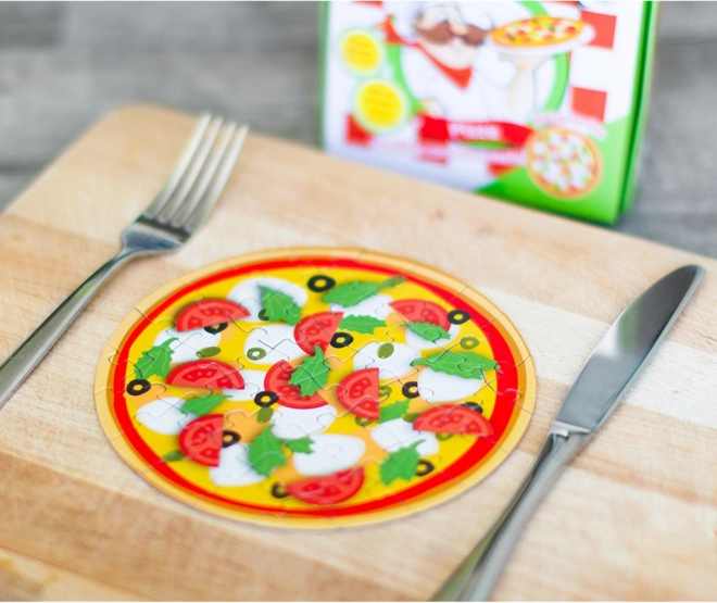 Rundes Puzzle mit dem beliebten Pizzamotiven ist ideal für Liebhaber dieser Köstlichkeit. Das Puzzle sorgt für Spaß in der ganzen Familie.