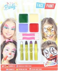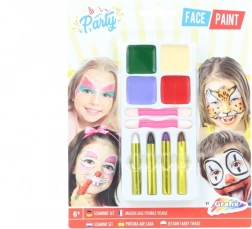 Dieses Gesichts- und Körpermal-Set bietet alles, was Sie für eine schnelle und effektvolle Verwandlung benötigen. Dank der Kombination aus 4 cremigen Farben und 4 Farbstiften gelingen präzise Linien, sanfte Schattierungen und auffällige Motive. Die Farben lassen sich mit den beiliegenden Applikatoren leicht auftragen; für größere Flächen kann ein Schwämmchen verwendet werden.