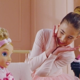 Das Spielzeug unterstützt Kinder beim Balletttraining durch die Möglichkeit der Interaktion mit der Figur im Tanzstudio. Das Mädchen auf dem Bild und Ballerina Molly demonstrieren echte Ballettpositionen.