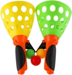 Das Catch-Ball-Set bringt ein einfaches, aber fesselndes Spiel für Kinder und Erwachsene. Die perforierten Körbchen aus leichtem Kunststoff ermöglichen einen gleichmäßigen Luftstrom, wodurch der Ball leichter geworfen und gefangen werden kann. Ideal zur Förderung von Geschicklichkeit, Reaktionsfähigkeit und Teamarbeit.