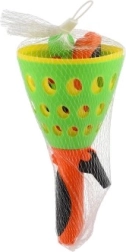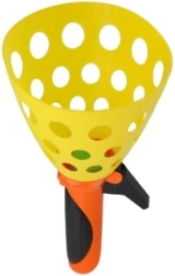 Perforierte Körbchen aus stabilem Kunststoff sorgen für einen stabilen Ballflug und einfaches Fangen – auch für kleinere Kinder.