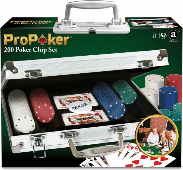 Genießen Sie ein authentisches Pokererlebnis mit dem kompletten ProPoker 200 Set. Enthält 200 Chips, 2 Kartendecks, Dealer-Button und einen robusten Aluminiumkoffer für einfaches Transportieren. Ideal für Texas Hold'em und Heimturniere mit 2–6 Spielern.