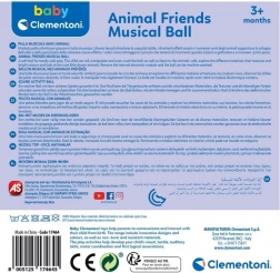 Der Musikball BABY CLEMENTONI ist so gestaltet, dass er Kinder auf natürliche Weise zum Entdecken motiviert. Tiergeräusche und eingängige Melodien regen das Hörvermögen an, während weiche Materialien mit verschiedenen Texturen und farbige Schlaufen den Tastsinn und die Feinmotorik fördern. Dank der kompakten Größe Ø 15 cm liegt der Ball auch den Kleinsten gut in der Hand.
