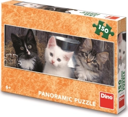 Machen Sie Kindern eine Freude mit einem süßen Puzzle, das auf jeden Tisch passt. Das Panorama-Puzzle mit drei Kätzchen sorgt für einen entspannten, unterhaltsamen Nachmittag und wird nach der Fertigstellung zu einer schönen Dekoration fürs Kinderzimmer.