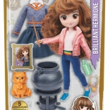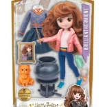 Modepuppe Hermine mit vollem, reichen Haar. Sie hat bewegliche Arme, Beine und Kopf. Im Lieferumfang enthalten sind ein Set mit Verkleidungen, ein Zauberstab, ein Schal und die Katze Krummbein. Geeignet ab 5 Jahren.