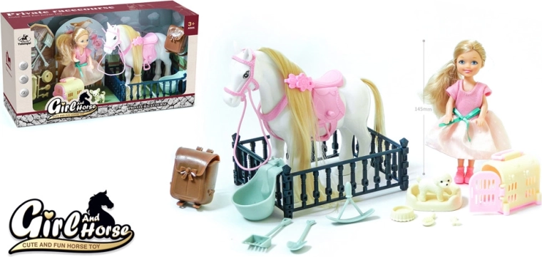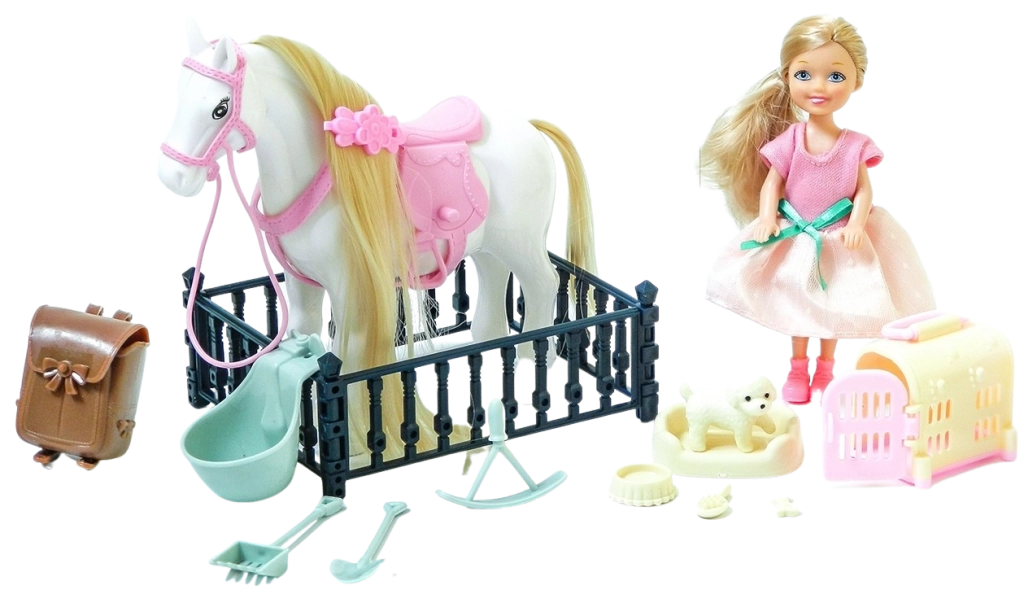 Pony, Puppe, Hündchen, Gehege, Körbchen und weiteres Zubehör