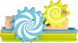 Bunte Zahnräder und Bauteile vermitteln mechanische Prinzipien auf spielerische Weise und fördern die Kreativität.