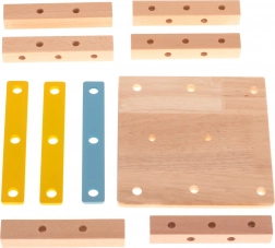 Dieses hochwertige Holz-Set ermöglicht es Kindern, einen Werkstatt-Hocker und weitere originelle Modelle zu bauen. Mit Schrauben, Muttern und Zahnrädern erkunden Kinder die Prinzipien einfacher Mechanik und trainieren Konzentration und Geschicklichkeit. Der Hocker ist stabil und bietet dank des durchdachten Systems aus Löchern und Verbindungen viele Kombinationsmöglichkeiten.