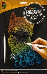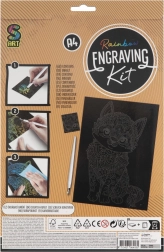 Gestalten Sie ein originelles Werk mit Katzenmotiv – kratzen Sie einfach vorsichtig die vorgedruckten Linien frei, und unter der schwarzen Deckschicht erscheinen Regenbogenfarben. Der Fantasie sind keine Grenzen gesetzt: Sie können auch freie schwarze Flächen ausarbeiten und Ihren eigenen Rahmen oder Details hinzufügen.
