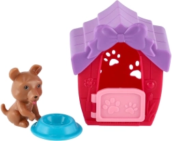 Niedliches Set für kleine Tierfreunde mit einem plastik Häuschen für ein Welpen mit öffnender Tür und einem Futternapf. Die kompakten Maße 6 × 7 cm machen es zur idealen Spielzeugbegleitung für unterwegs und zu Hause. Geeignet für Kinder ab 3 Jahren – fördert Fantasie und Rollenspiele.