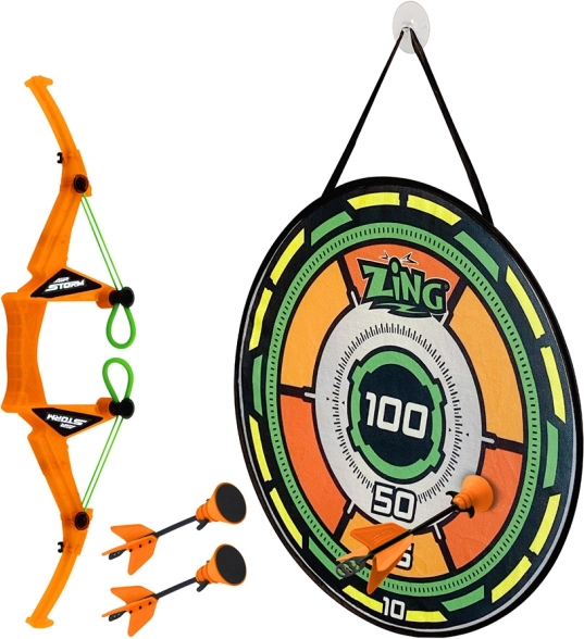 Bogen mit drei Pfeilen und Zielscheibe für sicheren Spaß im Innenbereich. Ideal für Kinder ab 5 Jahren.