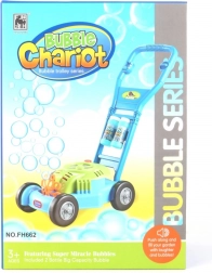 Der ergonomische Kunststoffgriff und die stabile Konstruktion mit breiten Rädern sorgen auch bei kleineren Kindern für leichtes Führen. Einfach Seifenblasenflüssigkeit nachfüllen, Knopf drücken und beobachten, wie eine Blase die andere überholt.