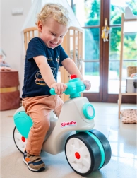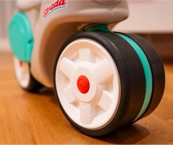 Breite Räder und eine Hupe am Lenker bieten zusätzliche Stabilität und Spaß beim Fahren.