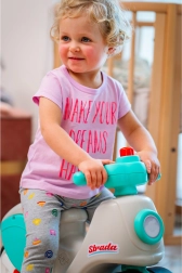 Laufrad Strada Retro bringt Erinnerungen an Spielzeug aus den 70er Jahren in einem neuen, modernen Look zurück. Es ist ideal für Kinder ab 1 Jahr und trägt bis zu 25 kg. Dank der leisen Räder mit einer Elastomerschicht bietet das Laufrad ein ruhiges und leises Fahrerlebnis, während die breiten Räder für Stabilität sorgen.