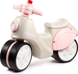 FALK präsentiert sein Retro-Lauflernrad Strada, das historisches Design mit aktuellen Trends kombiniert. Dank der großen Räder sind Kinder stabil und sicher, ideal zur Entwicklung von Gleichgewicht. Die elastomere Oberfläche der Räder macht sie kratzfest. Der Roller lässt sich mit dem drehbaren Lenker leicht steuern, der auch eine Hupe für zusätzlichen Spaß enthält.