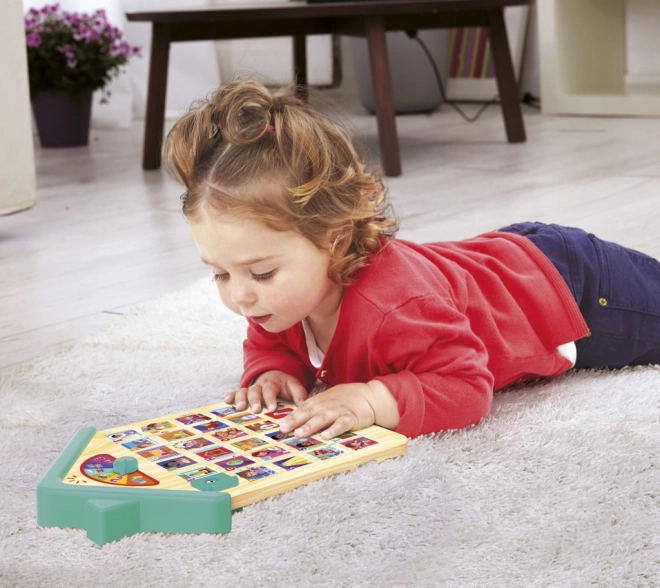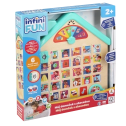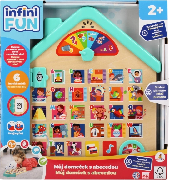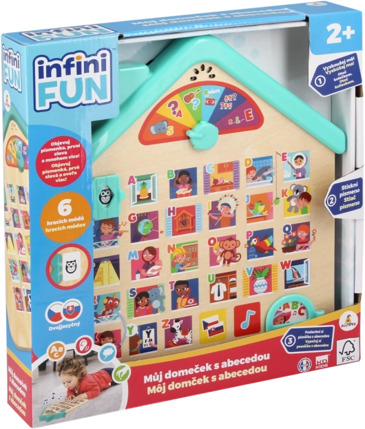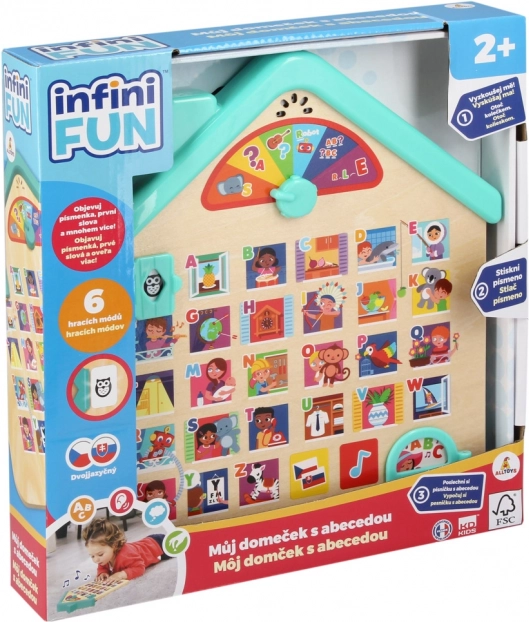Dieses edukative Holzhaus macht Kinder spielerisch mit dem Alphabet und Grundwörtern vertraut. Dank gesprochener Anweisungen auf Tschechisch und Slowakisch finden sich Kinder leicht zurecht, entdecken Buchstaben und ordnen sie fröhlichen Bildern zu. Die elektronischen Batteriefunktionen bieten Klänge, Melodien und Lernfreude.