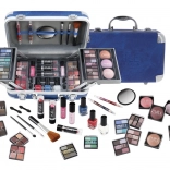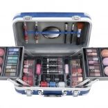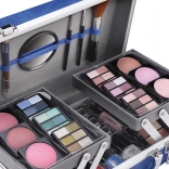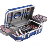 Kosmetik-Köfferchen mit Aluminium-Ecken von Travel Blue mit integriertem Spiegel – insgesamt 84 Zubehörteile.