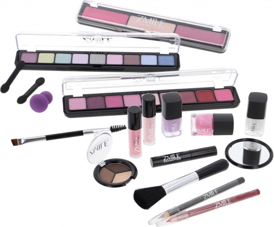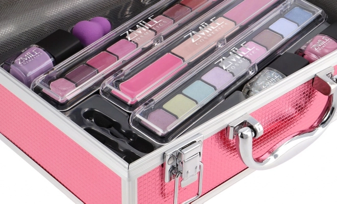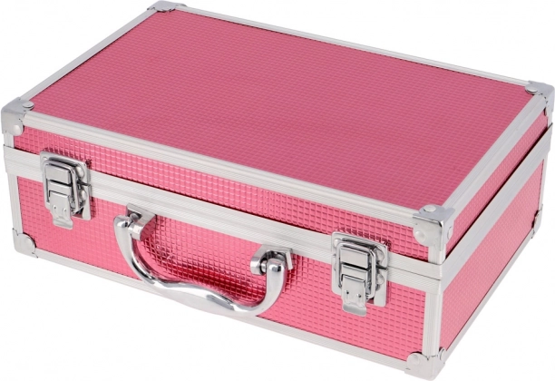 Kosmetikkoffer mit Aluminiumrahmen Marry Berry mit integriertem Spiegel – insgesamt 38 Zubehörteile. Enthält 18× Lidschatten, 2× Rouge, 1× Highlighter, 1× Augenbrauenwachs, 2× Lipgloss, 3× Nagellack, 1× Mascara, 1× Kajalstift, 1× Lipliner, 2× doppelseitigen Applikator für Lidschatten, 1× doppelseitigen Applikator für Augenbrauen, 1× Rougepinsel, 1× runden Spiegel und 1× Mini-Make-up-Schwämmchen. Dermatologisch getestet, entspricht den strengen EU-Normen.
