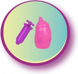 Spielen Sie mit dem Plüschtier dank Zubehörteilen wie einer Flasche und einer Spritze, die die Pflege und die Entwicklung der kindlichen Empathie unterstützen.