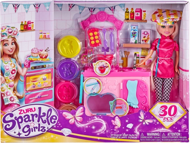 Das Sparkle Girlz Spielset Bäckerin ist ideal für kleine Konditorinnen und Bäcker, die kulinarische Abenteuer lieben. Die Puppe ist bereit zum Backen und dank des umfangreichen Zubehörsets können Kinder echte Küchenaktivitäten nachahmen – vom Ausrollen des Teigs bis zum Verzieren der Kreationen.