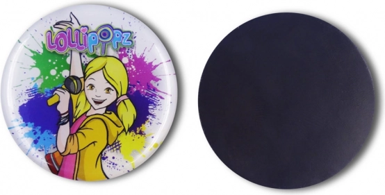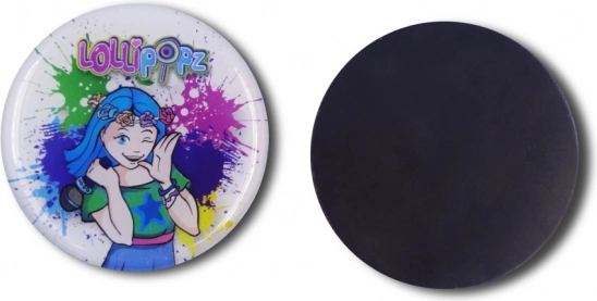 Stilvoller runder Magnet mit Motiv LOLLIPOPZ und einem Durchmesser von 45 mm schmückt jeden Kühlschrank oder jede Magnettafel. Dank des starken Magneten hält er zuverlässig Notizen und Fotos und kommt im Mix aus 5 Designs voller Farben. Eine tolle Wahl für Fans und Kinder ab 3 Jahren.
