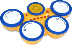Digitale Trommeln – 4 Trommeln mit 12 voreingestellten Perkussionsinstrumenten, 6 Musikstilen (Demo-Songs), einstellbarer Geschwindigkeit, Lautstärkeregler und rhythmischer LED-Hintergrundbeleuchtung. Betrieb mit Batterien 3× R6/AA 1,5 V. Abmessungen 39×25×6,5 cm.