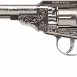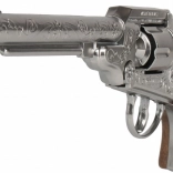 Der Revolver in diesem Set ist reich mit wunderschönen Gravuren verziert, was ihn nicht nur zu einem großartigen Requisitenteil, sondern auch zu einem stilvollen Sammlerstück macht.