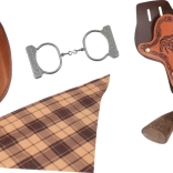 Hut, Revolverholster, Halstuch, Handschellen, Sheriffstern, Revolver