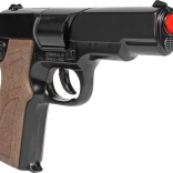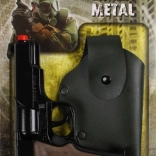 • Die Pistole hat ein Metallgehäuse für ein realistisches Aussehen und einen Plastikgriff für einen bequemen Halt.