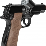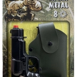 Polizei Pistole Command ist das perfekte Spielzeug für kleine Gesetzeshüter. Diese acht-schüssige Pistole aus Metall bietet ein realistisches Aussehen und wird zusätzlich mit einem Lederholster für einfaches Tragen geliefert.