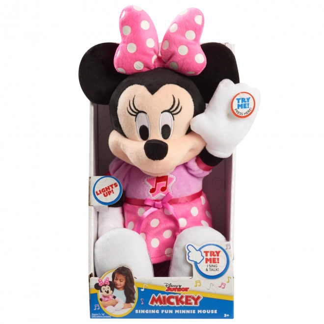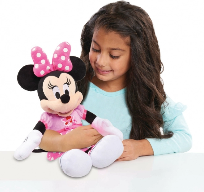Drücke Minnies Hand und singe ein Lied aus Minnie's Bow-Toons mit ihr, was Kindern die Möglichkeit gibt, Spaß zu haben und gleichzeitig zu lernen.