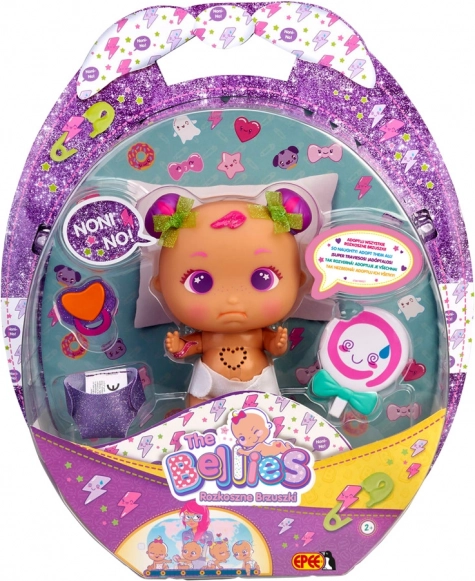 Entdecken Sie die Welt der Bellies Sweet Tummies – interaktive Puppen, die mit Geräuschen reagieren und Kindern viel Freude und Fantasie schenken. Dank des einzigartigen Muttermals und des Zubehörs wird jedes Spiel zu etwas Besonderem. Die Babys Noni-No und Kuki-Cute glänzen zusätzlich mit glitzernden Windeln und farbenfrohen Details.