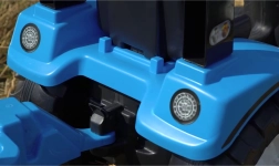 Das robuste Kunststoffgehäuse, die markante Front mit „Scheinwerfern“ und die großen profilierten Räder meistern das tägliche Spielen draußen und im Hof.