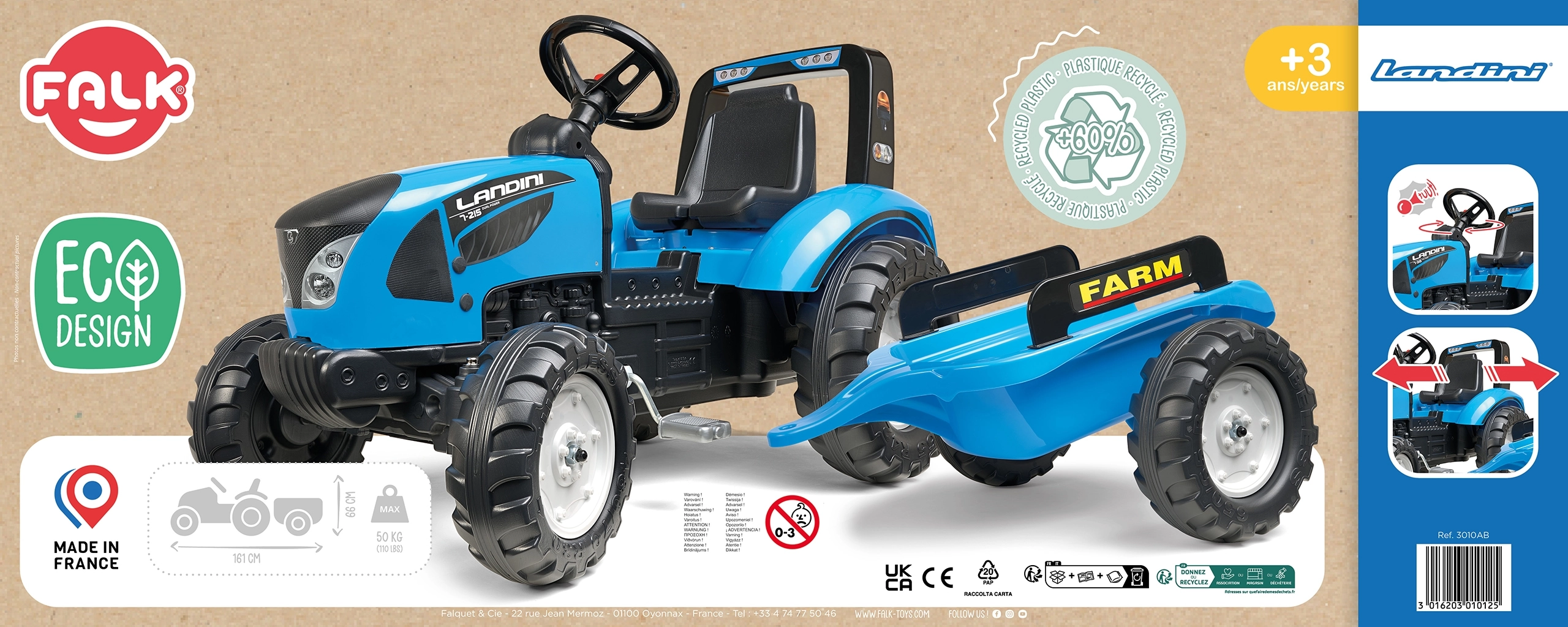 Der Trettraktor LANDINI ist ein sorgfältig verarbeitetes Spielzeug aus hochwertigem Kunststoff, das den täglichen Kinderabenteuern im Garten und auf dem Spielplatz standhält. Realistische Details wie vordere Scheinwerfer, robuste Räder und der Anhänger mit der Aufschrift „FARM“ unterstreichen den authentischen Look eines echten Traktors.