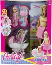 Puppe (Mama), Puppe (Mädchen), Kinderwagen, Zubehör