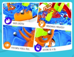Gehe von Position 1 bis 100 vor, überwinde Rampen, Kurven und Hindernisse in einem übersichtlichen, farbigen 3D-Labyrinth.