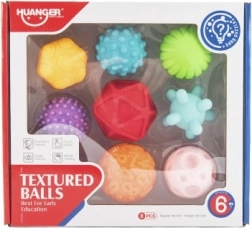Dieses Set von strukturierten Bällen ist ideal für Kinder ab sechs Monaten geeignet. Sie sind aus Silikonmaterial hergestellt, das ein angenehmes Gefühl bietet und ein einfaches Greifen ermöglicht. Verschiedene Texturen auf der Oberfläche der Bälle stimulieren die sensorische Wahrnehmung.