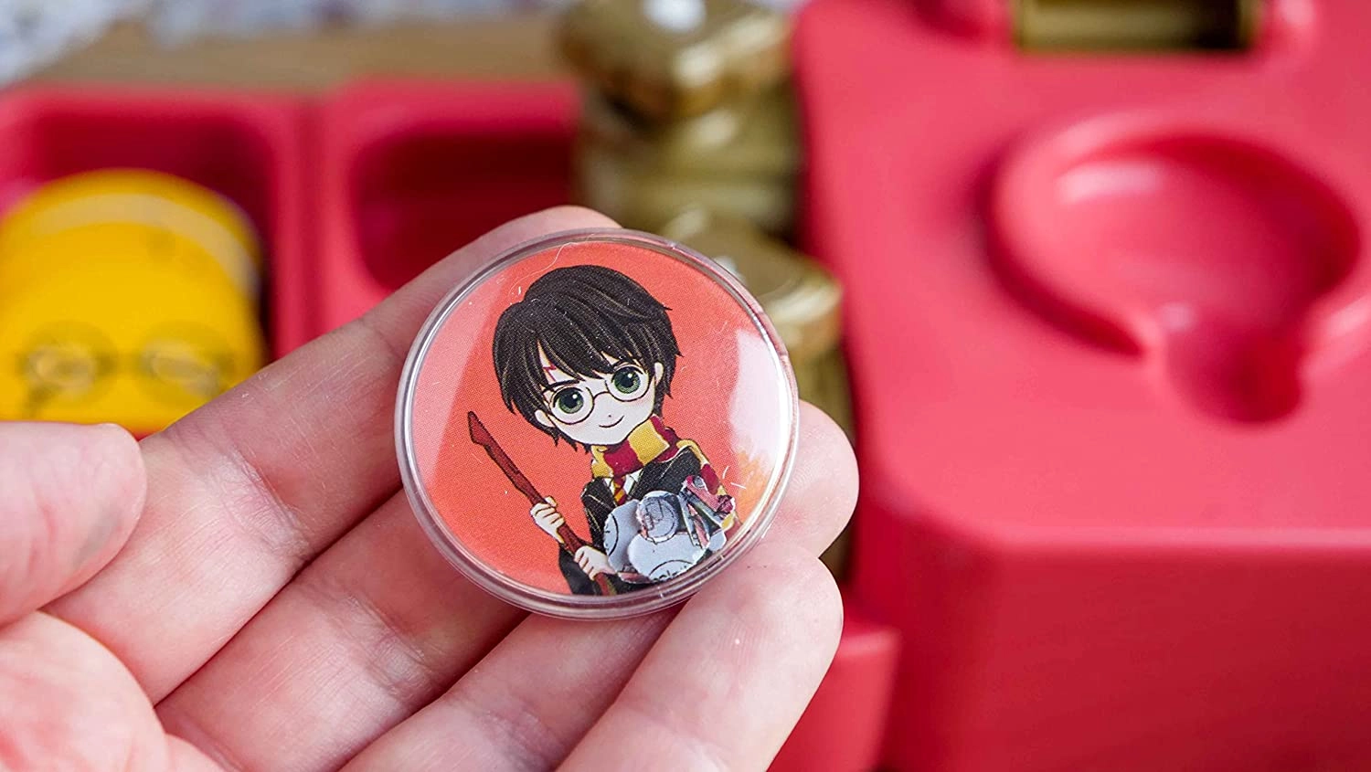 Mit diesem Kreativset zur Abzeichenherstellung entwerfen und gestalten Kinder im Handumdrehen originelle Buttons mit beliebten Figuren, Symbolen und Grafiken aus der Welt von HARRY POTTER. Die praktische Konstruktion der Produktionsstation und die übersichtlich sortierten Komponenten sorgen für bequemes und sicheres Arbeiten.