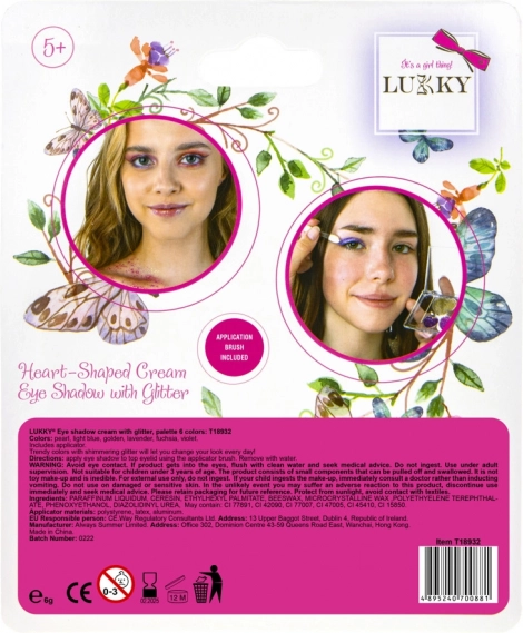 Die cremigen Lidschatten von Lukky bieten sechs glitzernde Farben, die ideal für die kreative Gestaltung und den Spaß der Kinder mit dem Pinsel sind.