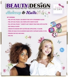 Das Set LUKKY Beauty Design Make‑up & Nägel bietet alles, was Kinder für ihr erstes kreatives Schminken und Nagelstyling brauchen. Abziehbare Lacke lassen sich leicht auftragen und ohne Entferner abnehmen, schimmernde Cremelidschatten bringen jeden Look zum Strahlen und „Edelstein“-Sticker sorgen für verspielten Glanz.