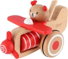 Der Drewnieschieber Flugzeug Coco von Classic World ist das perfekte Spielzeug für Kleinkinder, die ihre ersten Schritte machen. Es benötigt keine Batterien und fördert die Vorstellungskraft Ihres Kindes, während es stundenlangen Spielspaß bietet. Wenn das Flugzeug geschoben wird, beginnt sich der Bär Coco zu bewegen und das Propeller dreht sich, wodurch ein amüsantes Geräusch erzeugt wird. Geben Sie Ihrem Kind die Möglichkeit, ein kleiner Pilot zu sein.