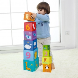 Diese bunten Blöcke enthalten Zahlen, Tiere und englische Wörter und fördern das Lernen und die Entwicklung kognitiver Fähigkeiten.
