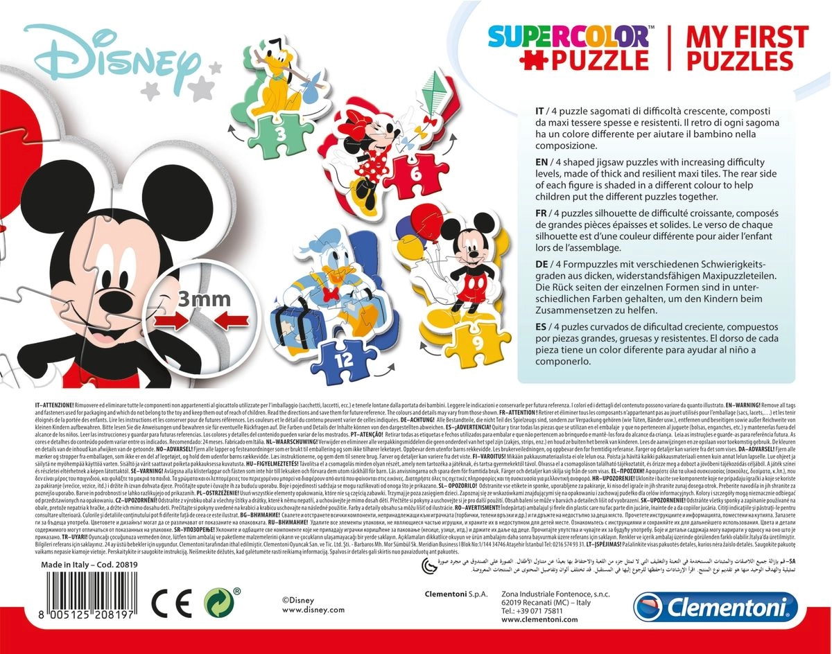 Entdecken Sie den Spielspaß mit dem beliebten Helden MICKEY MOUSE! Das Set CLEMENTONI Mein erstes Puzzle 4-in-1 bietet vier unterschiedliche Puzzles mit steigendem Schwierigkeitsgrad (3, 6, 9 und 12 Teile), mit denen Kinder spielerisch Konzentration und Geduld trainieren. Extra große und robuste Teile liegen gut in der Hand und halten dem täglichen Spielen stand.