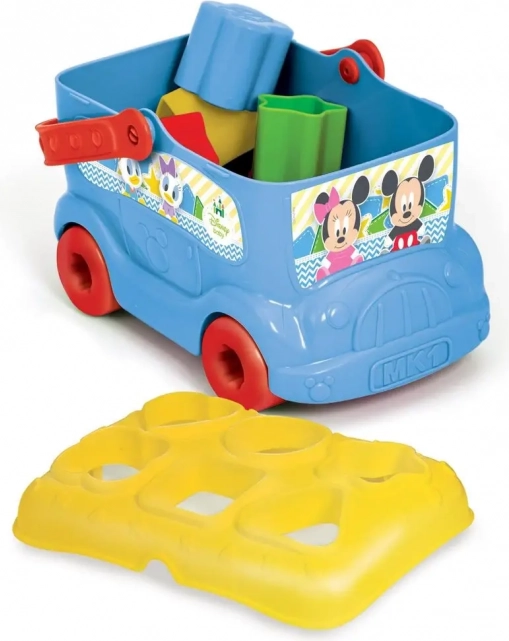 Der Steckenbus Disney Mickey ist eine Plastikbox in Form eines Busses, der nicht nur fröhlich aussieht, sondern auch sehr praktisch ist. Sein Deckel hat Öffnungen für das Einsetzen von Formen, was es Kindern ermöglicht, ihre Logik und Feinmotorik zu trainieren. Dieser Bus enthält neun bunte Bauklötze in verschiedenen Formen.