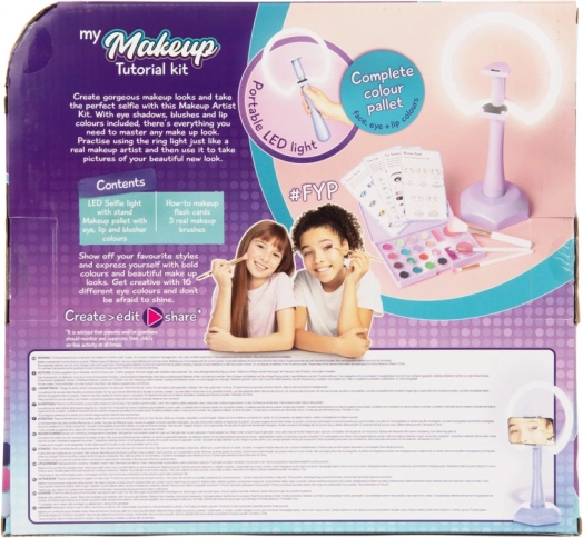 Makeup-Tutorial-Set Love & Hugs ist ideal für junge angehende Kosmetikerinnen, die ihre Kreativität entfalten und lernen möchten, sich wie Profis zu schminken. Das Set enthält die notwendigen Werkzeuge, um ein perfektes Make-up zu erstellen, zusammen mit LED-Licht zur Verbesserung des Endergebnisses.