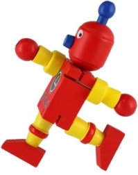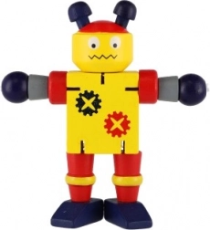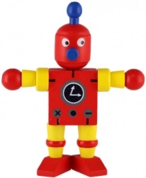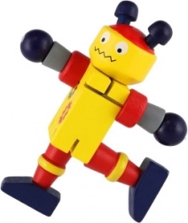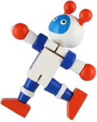 Der niedliche Holzroboter mit einer Größe von 12 cm begeistert kleine Entdecker. Dank elastischer Gummibänder hat er bewegliche Gliedmaßen und einen beweglichen Kopf, sodass Kinder ihn leicht hinsetzen, hinstellen oder unterschiedlich arrangieren können. Das Spielzeug fördert Feinmotorik, Kreativität und Fantasie. Geeignet ab 18 Monaten.